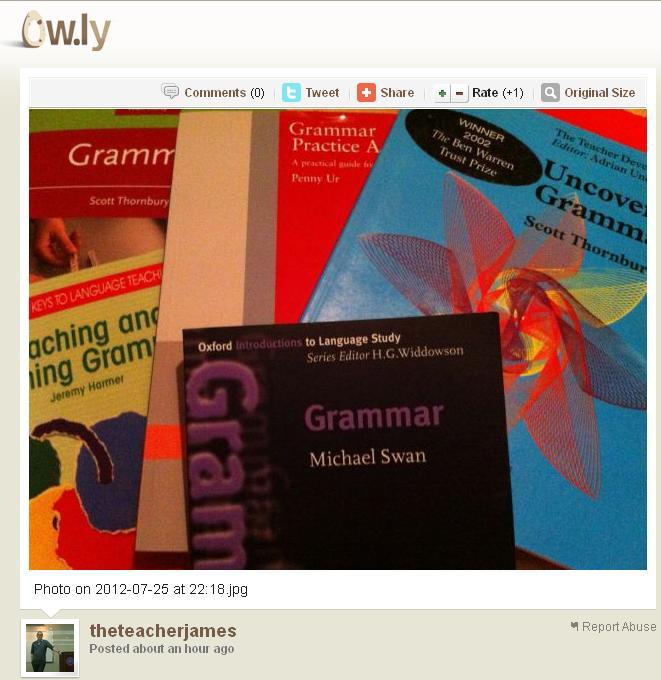 Although our dear moderators did try to nudge us towards the specific grammar points implied in the title of this week’s ELTchat  – no one would go there and this evening’s chat brought above all a plethora of books to read, with just a few online references (videos mainly)  towards the end  – Would that be the call of beaches and parasols before the summer break? LOL – though actually, lots were very definitely reference books rather than a straight read.